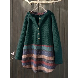 Aztec Print Button Front Jacket, Boho Long Sleeve Outerwear, Women's Clothing