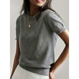 Solid Cable Knit Sweater, Casual Crew Neck Long Sleeve Sweater, Women's Clothing